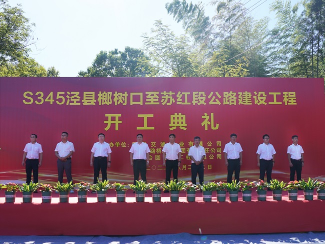 8月22日上午9时18分,S345泾县榔树口至苏红段公路建设工程举行开工仪式。泾县县委书记施怀中出席并宣布项目开工。泾县人大常委会主任詹善清,政协主席涂顺,县委常委、政法委书记、常务副县长马文波,公司党委书记、董事长任杰等有关领导出席开工仪式。
