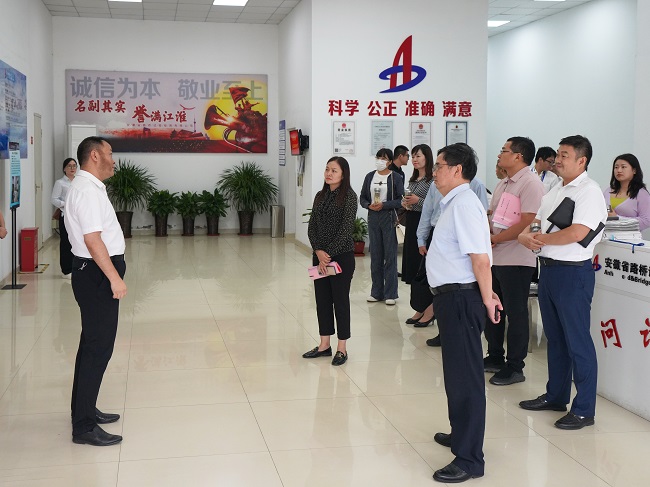 走访交流期间,蜀山区经济技术开发区商会一行还前往检测公司和G312合六路项目展开实地考察,对项目施工进度、安全保障等情况给予充分的肯定,对员工饱满的热情、昂扬的斗志、拼搏的精神风貌给予高度赞扬。