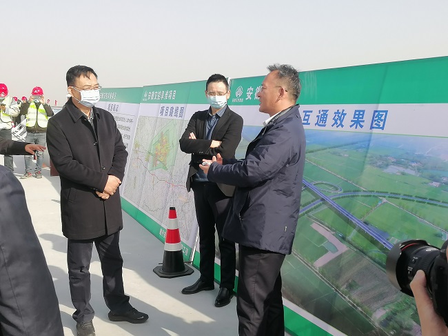 项小龙一行现场实地查看了阜淮高速洪河分洪道特大桥施工进展情况,听取了项目负责人关于项目建设进度、工程质量技术及项目重难点的攻坚汇报,并对当前项目取得的各项成绩给予了肯定。